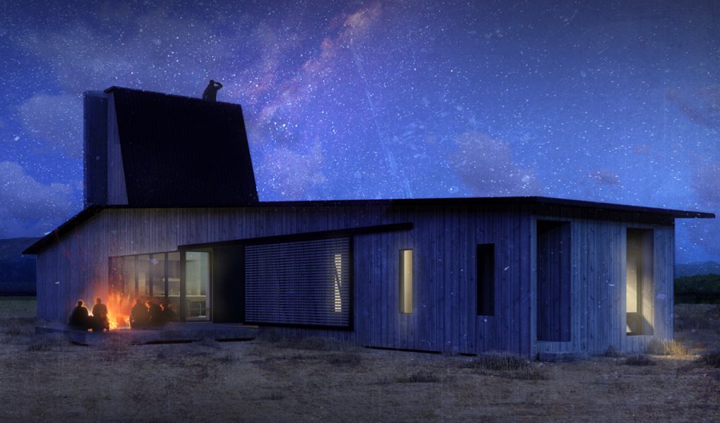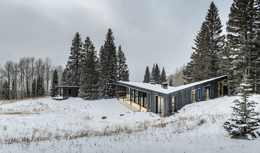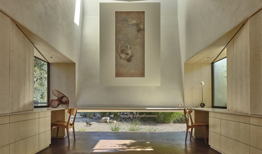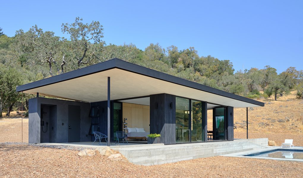 The site’s geological formations became a metaphorical motif for this little black dress of a dwelling. Its fire-resistant cementitious stucco,…