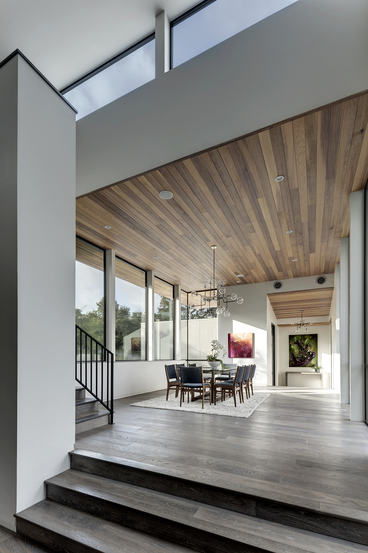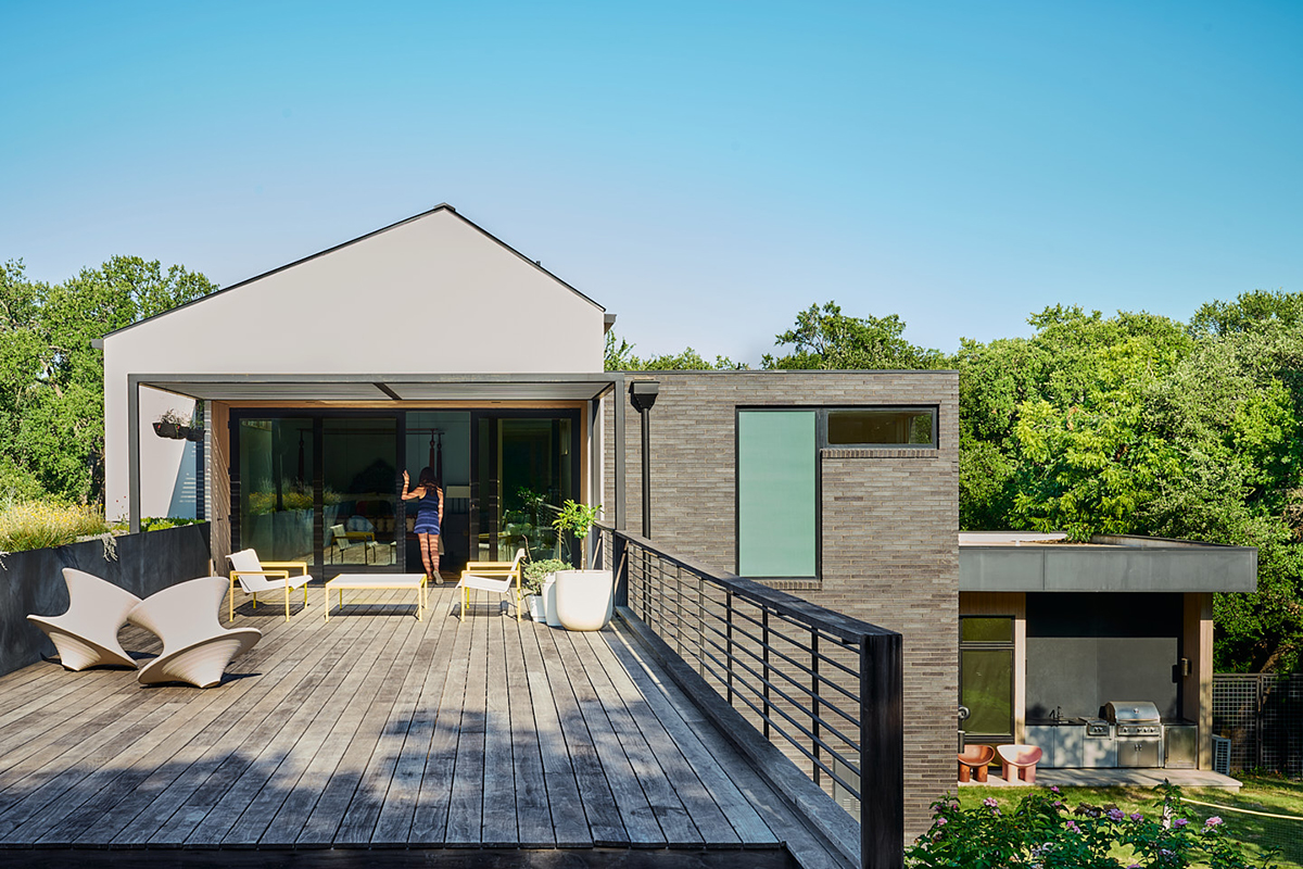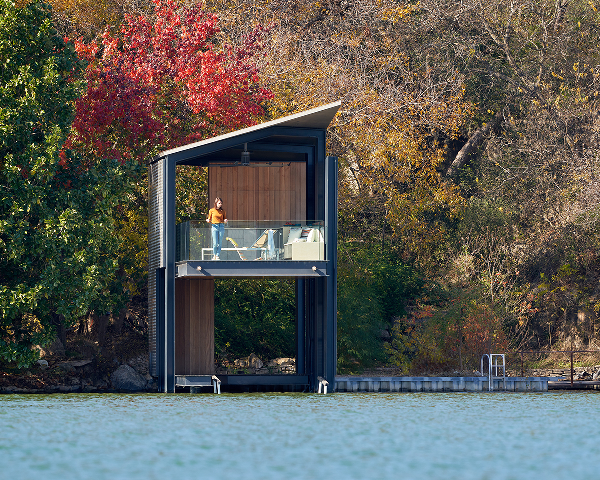 One of the more delightful projects of Austin, Texas–based Matt Fajkus Architecture isn’t a house at all: It’s a two-story dock on Lake Austin, designed with the sun in mind. An angled roof and perforated steel screens provide a precisely calibrated amount of sun and shade throughout the year, as well as shelter from the breezes and filtered views. “The thing that just completely stood out to us [is that] it’s architecture as art, or is it art as architecture?… It just makes you smile,” says Stephanie Kingsnorth, AIA, a juror for the AIA Austin 2023 Design Awards, where Filtered Frame Dock received an award of merit. One year prior, it won an Honor Award in this magazine’s architecture competition.