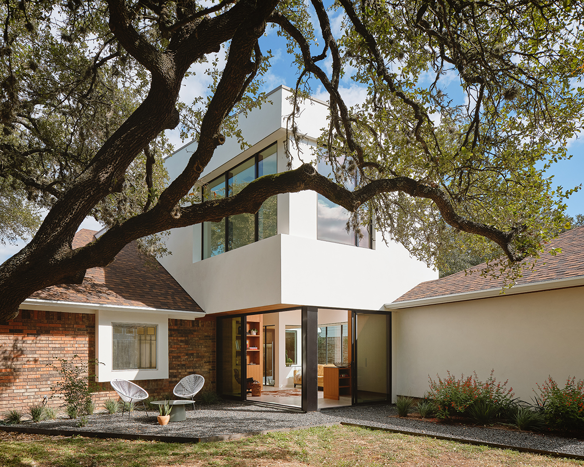Since 2010, the eponymous firm has been creating intriguing, light-filled spaces that coax out the distinctive characteristics of each site—which could be its slope, its rocks and trees, or even its iron-rich red soil. A quick scroll through the firm’s website shows how different these architectural interventions can be. According to principal Matt Fajkus [pronounced FI-cus], the variety of responses stems from the geographic diversity of Austin, his hometown. “We’re at a fault line,” he elaborates. “Immediately east of downtown is very flat, moist prairie land, and immediately west of town is very rocky and hilly— an area that is very good for architecture and very bad for farming. We have a lot of interesting changes in topography, different tree and plant species, and this whole ecotone that exists in this convergence of different realms.”