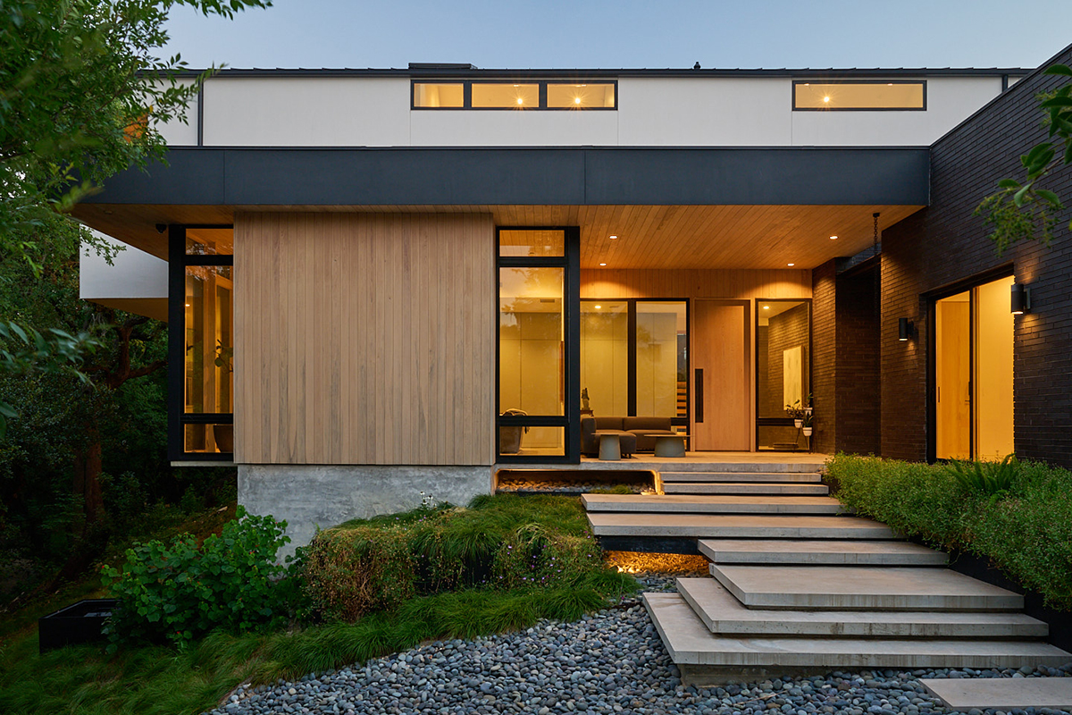 Among the more recent work is Descendant House, a multigenerational house that elegantly accommodates three generations plus guests. “They’re all in the same structure, but each has their own privacy, and spaces to mix,” says Matt. The 4,000-square-foot home is a split level, with the younger generation and their children located on the upper floor and guests and grandparents in separate volumes below. The firm figured out how to showcase the distinct microclimates on the steeply sloping site: The upper level flows onto a sunny roof terrace that connects to the home’s vegetable garden, and the common areas below look into a shady tree canopy.
