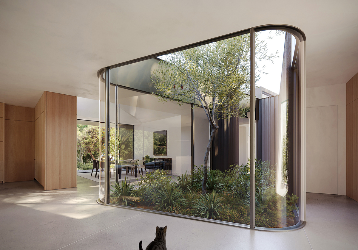 Since the relationship between indoors and outdoors is so integral to its projects, the firm increasingly began to take the lead on the interiors as well (Matt, Sarah, and some employees are also licensed interior designers). “We can offer a streamlined experience in terms of the design as well as the representation, where we can have everything built into the model and simulate different things between inside and outside,” Matt notes.