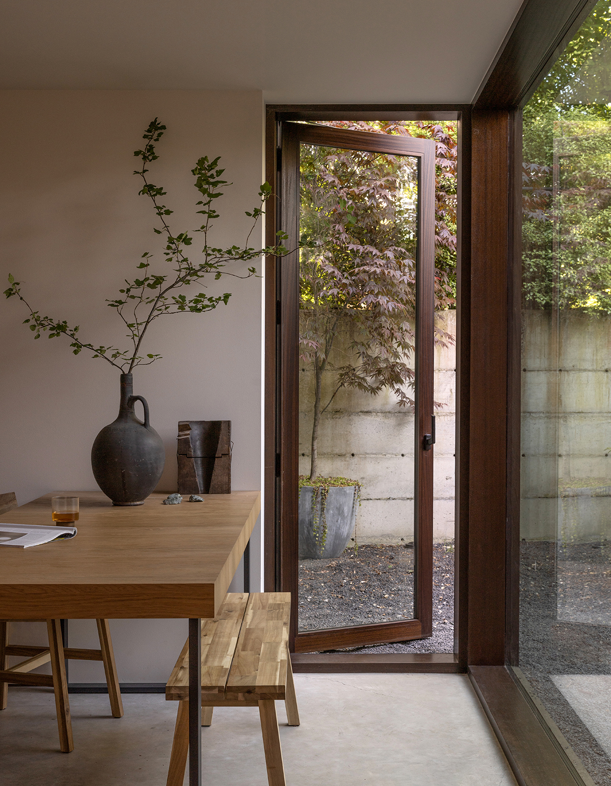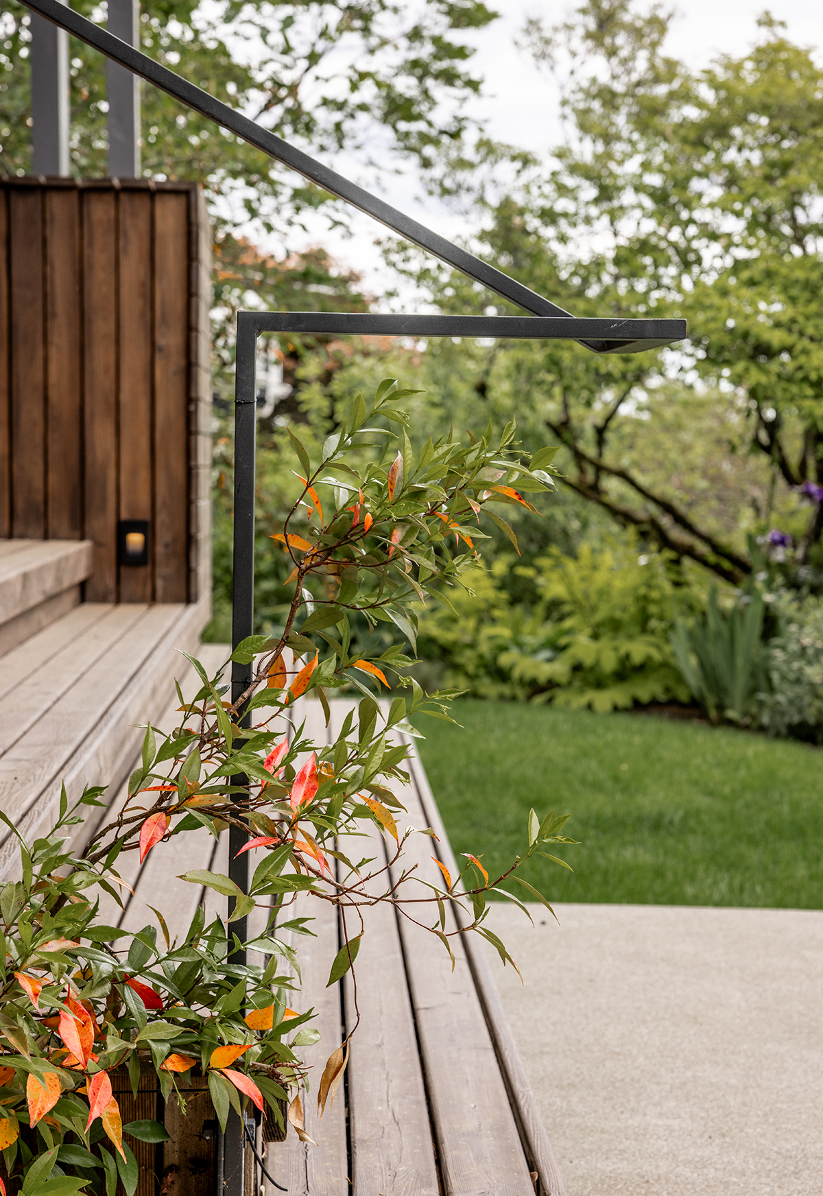 This project embodies the firm’s philosophy that landscape must be integral to architecture, rather than a budget afterthought. Matt and co-partner Jody Estes, who began their careers working in horticulture and landscape design, aim to create ecologically rich environments by considering the landscape first and treating the architecture as an extension of that. In this already lush backyard, a wisteria was preserved and retrained on a new trellis, and a mature birch tree was nursed back to health.