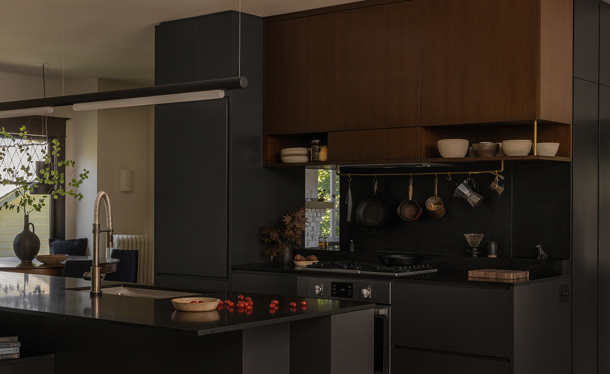 Another of their values was to preserve and reuse the original materials whenever they could. Dowbuilt Construction was on board with this “slower,” more intentional way of building, which meant deconstructing and labeling items and letting decisions unfold over time. “Seattle seems to be a city of tearing down and building new,” Matt says. “I had never worked on a Craftsman house, so this was new territory. I was looking to some of those European precedents for making modern insertions within a historic fabric, such as how to blend the dark colors so it feels like everything fits together.”