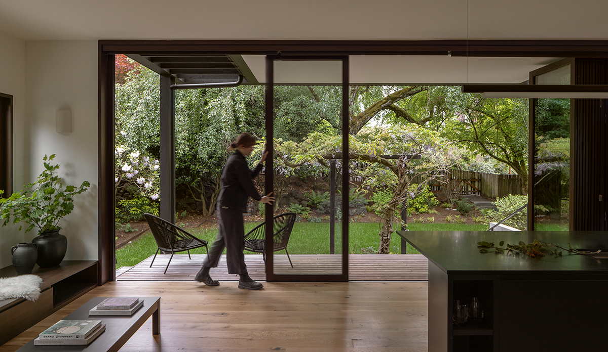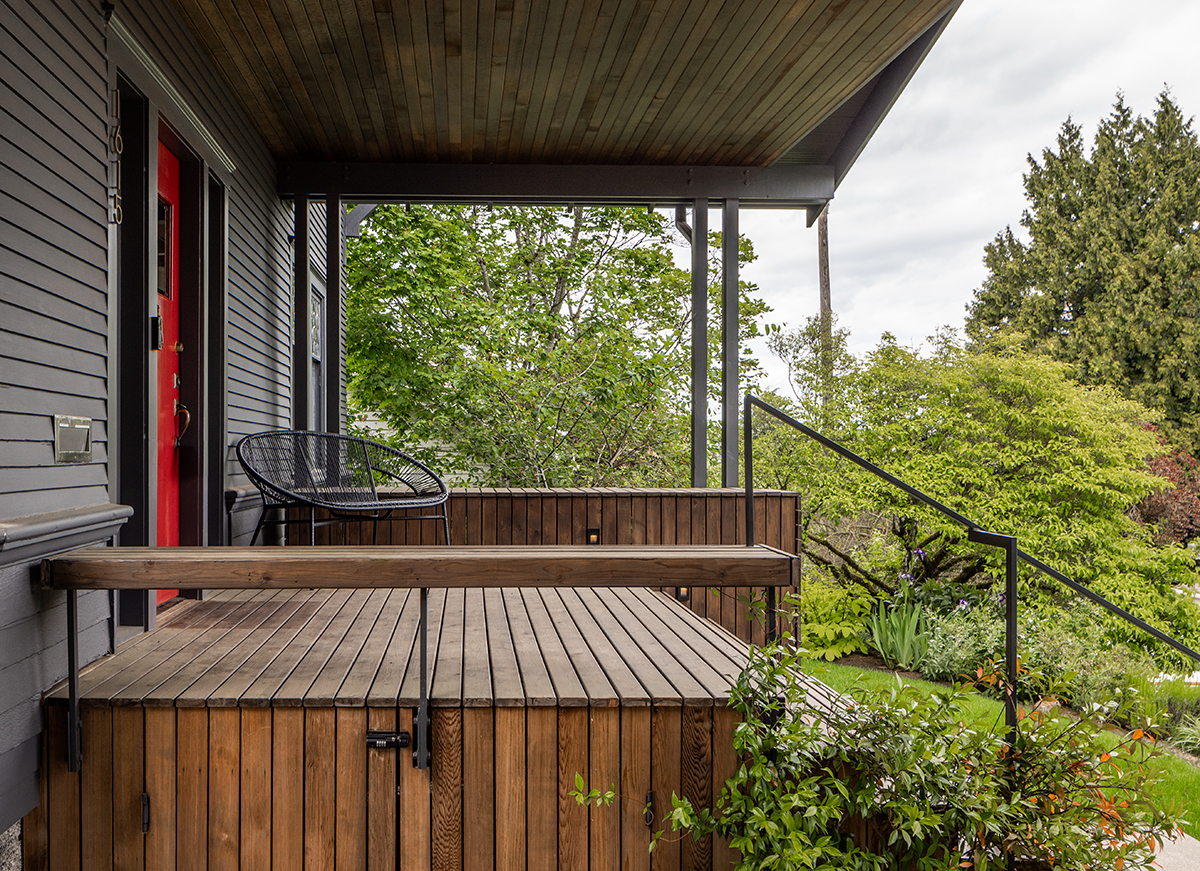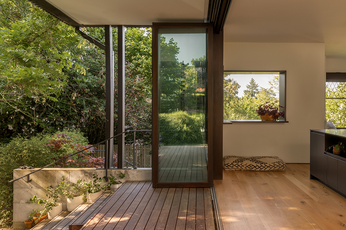 As an antidote to the Craftman’s inward gaze, Matt designed modern bay windows and opened the entire back wall to the rear yard. There, a 20-foot-long fold-and-pivot glazed door system, installed within a steel moment frame, lets the occupants spill out to a new porch and down to the private garden and back lane.