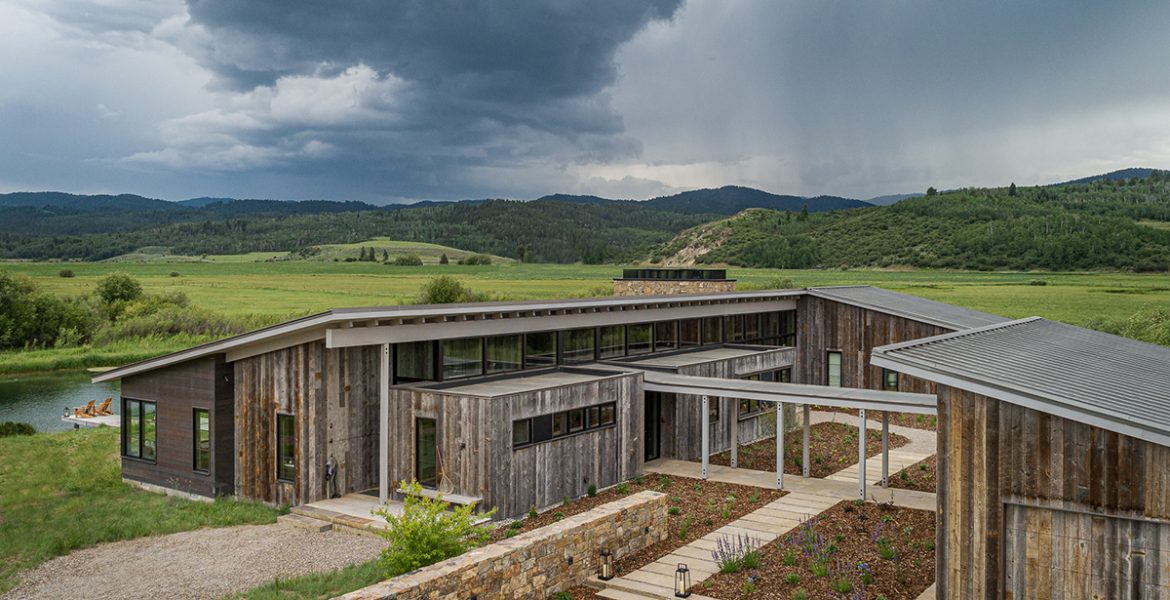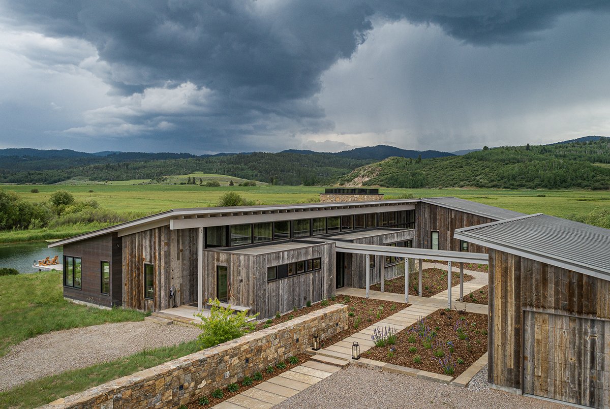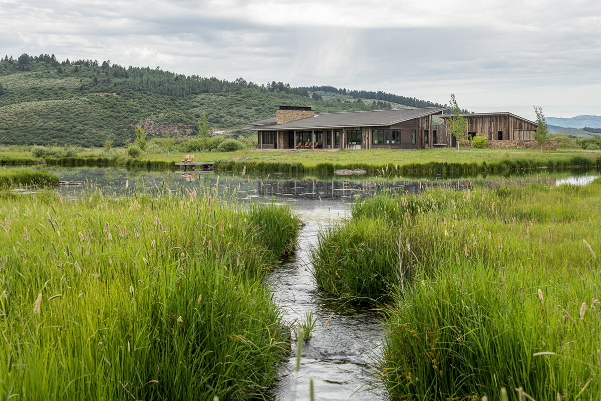 “The site is within a few hundred feet of the riverbank, and during the snowmelt in early spring, it’s right in the middle of the flood zone for the runoff,” explains Bryan Chilcote, an architecture principal at the firm. Nonetheless, proximity to the river was the entire point of the project for the clients, who are avid fly fishing enthusiasts. They just needed Hoedemaker Pfeiffer to solve the problem of that proximity.