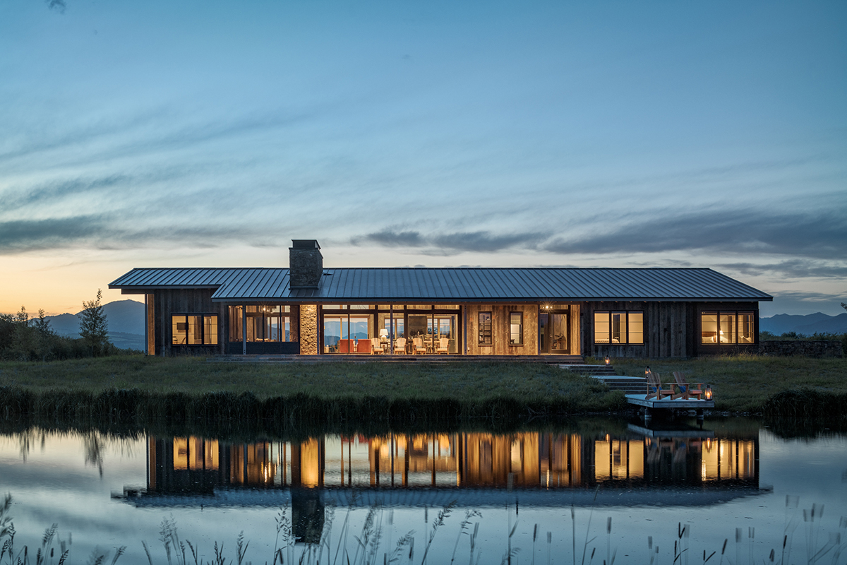 The elegant solution doesn’t just solve the problem of the floodplain, it harnesses it—establishing a focal point within the larger expanse. It’s now a destination for more than just humans; it welcomes all the nearby wildlife. “The lake anchors that wide-open space,” Bryan says. “It catches the light and reflects it into the house. It becomes part of the ecosystem, with water flowing into and out of it from the streams and creeks on the property.”