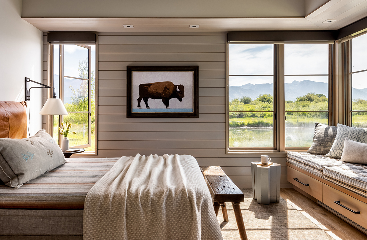 The other mix the firm has mastered is a blend of modern and traditional design that always feels familiar and fresh at the same time. It’s these qualities the clients on this second home project sought when they approached the firm with 160 scenic—but complicated—acres in Jackson Hole. “It is one of the most unusual sites that we’ve worked on,” says lead interior design partner Tim Pfeiffer. “The rarity of the site itself and the surroundings.”