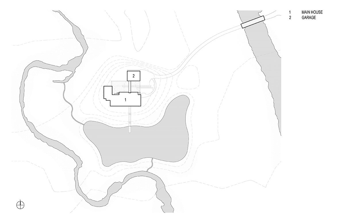 While hoisting the house was the answer, the goal was still a home that was modest in scale and low-slung—to keep it from dominating the natural beauty of the property. So instead of turning to structure for the boost, the team extracted the height they needed from the creation of a small lake adjacent to the footprint of the house. Says Bryan, “We used the material we extracted for the lake to build a plinth above the existing grade. At the end of grading it all out, you really can’t tell we manipulated it to the extent we did.”