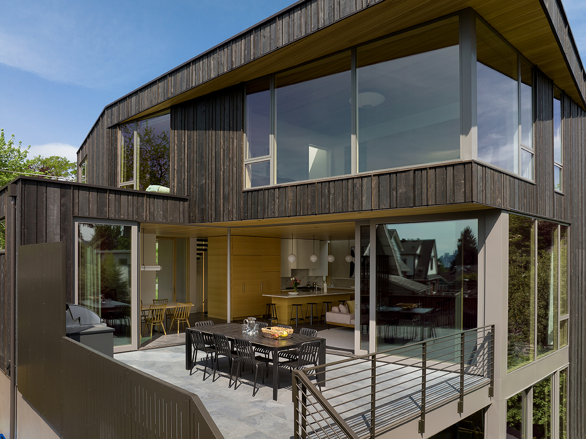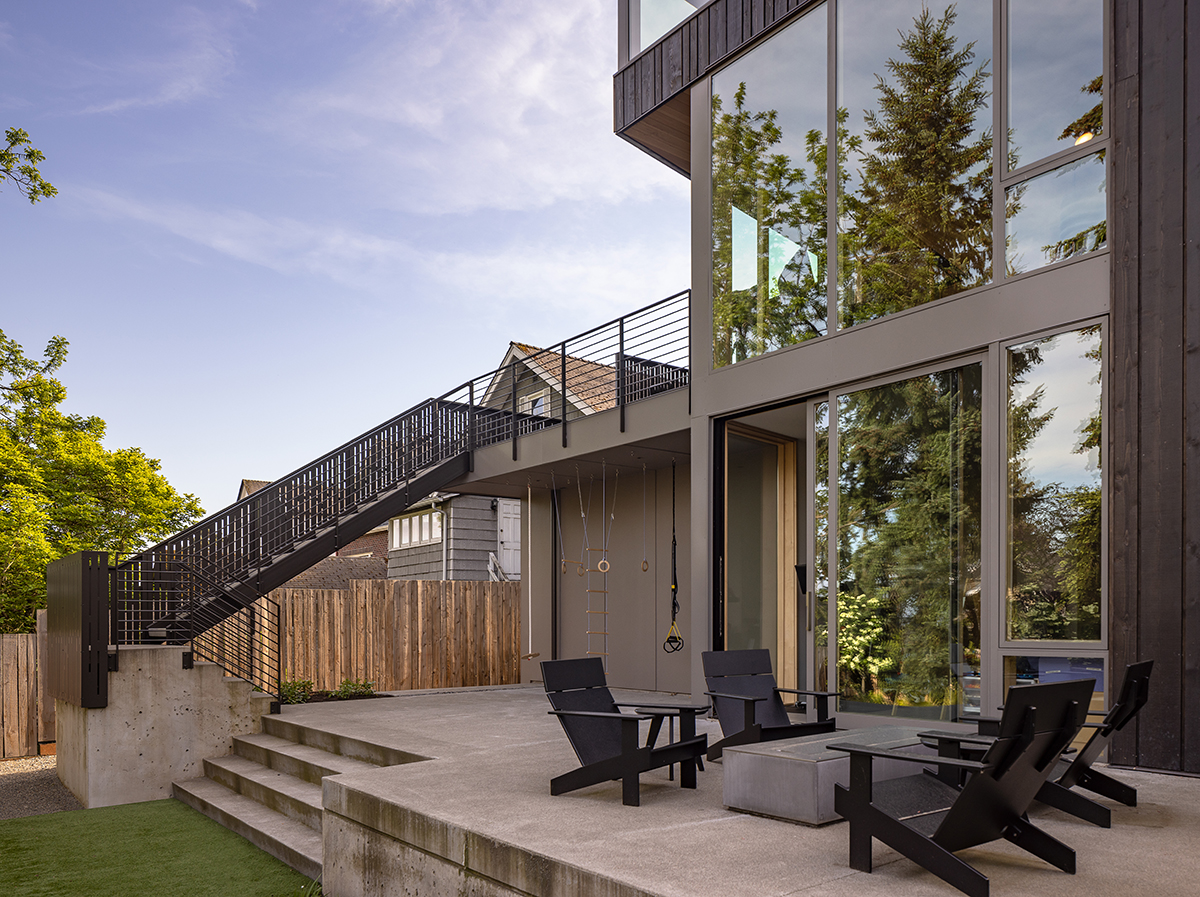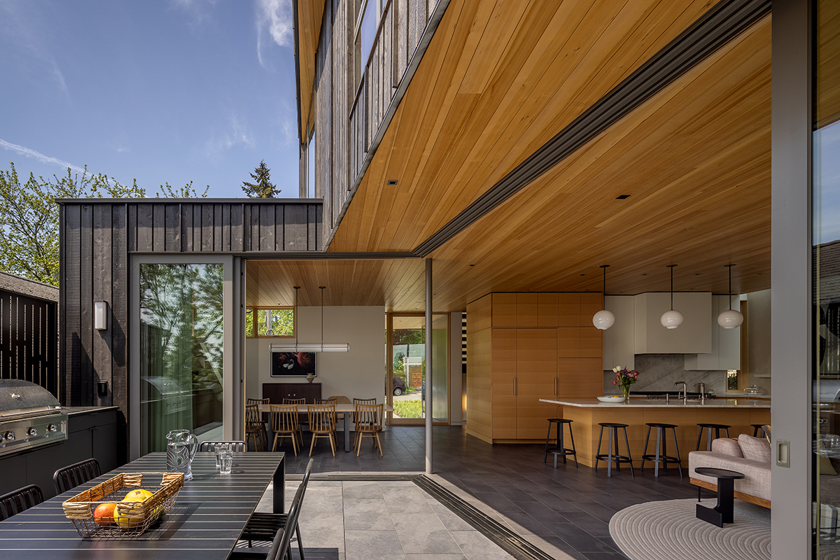 Although the Seattle family with three young children loved life on the water in their lake house, they longed to develop strong ties with a community. They found a 50-foot-wide by 120-foot-deep infill lot in Wallingford, a tight-knit neighborhood in north central Seattle, and reached out to local firm Prentiss + Balance + Wickline Architects to create a home that would engage with the street front and neighborhood greenway running through their backyard.