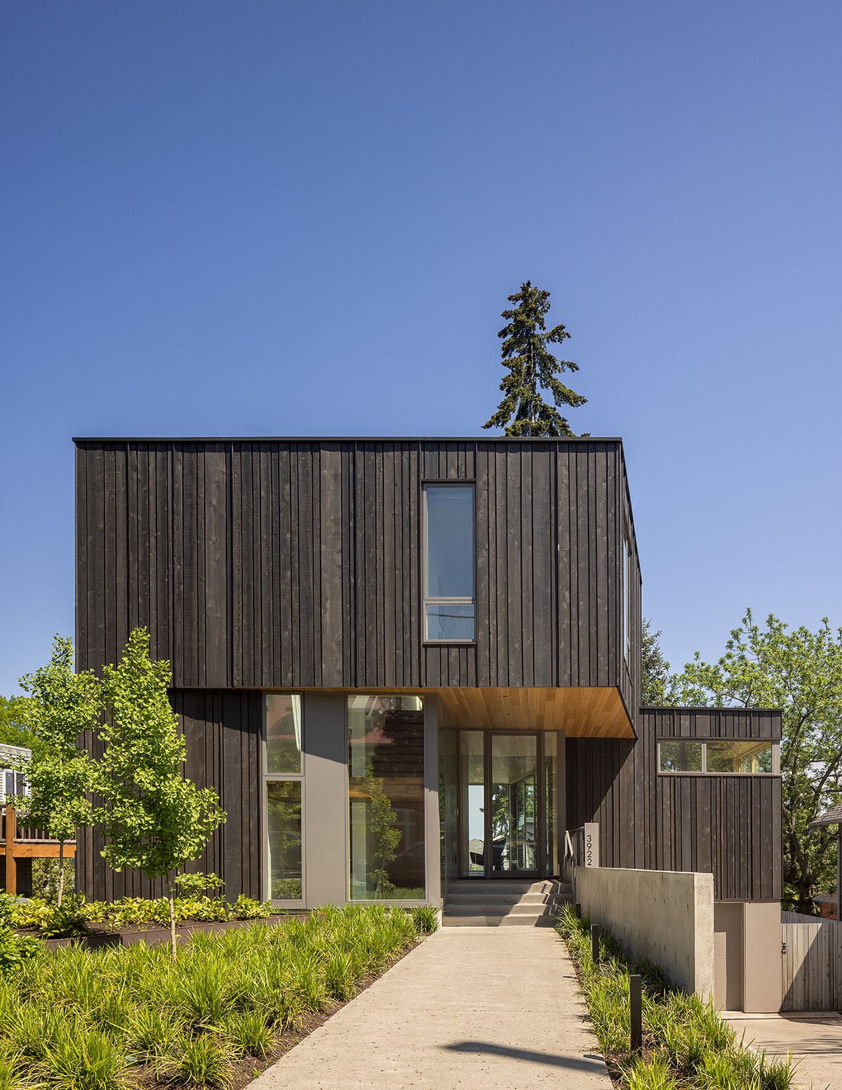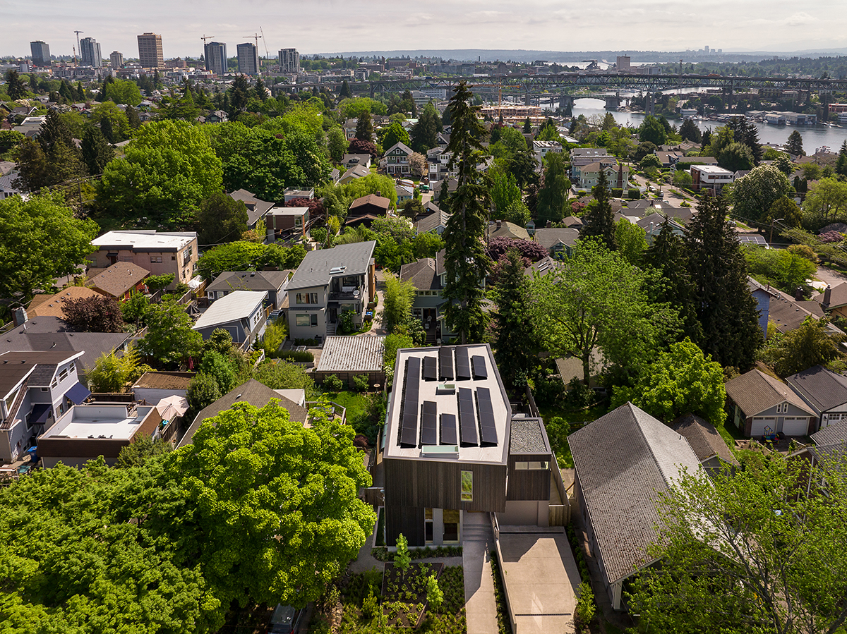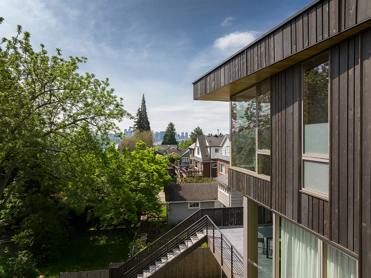 Although the Seattle family with three young children loved life on the water in their lake house, they longed to develop strong ties with a community. They found a 50-foot-wide by 120-foot-deep infill lot in Wallingford, a tight-knit neighborhood in north central Seattle, and reached out to local firm Prentiss + Balance + Wickline Architects to create a home that would engage with the street front and neighborhood greenway running through their backyard.