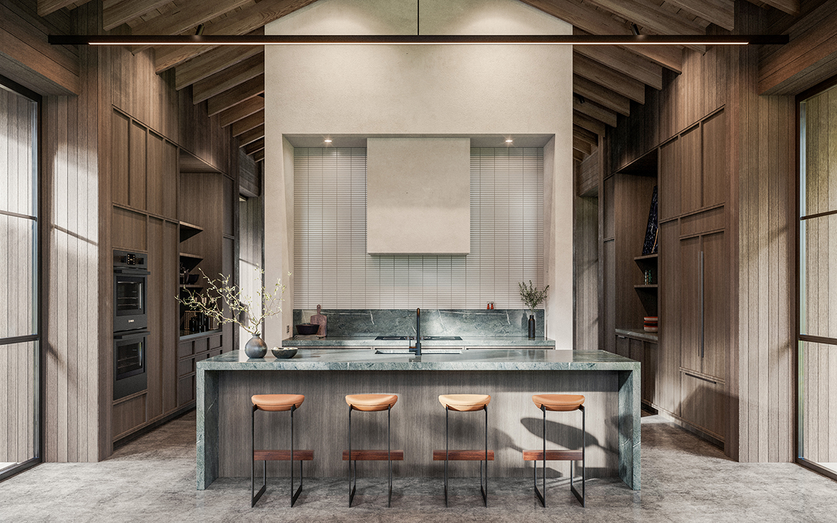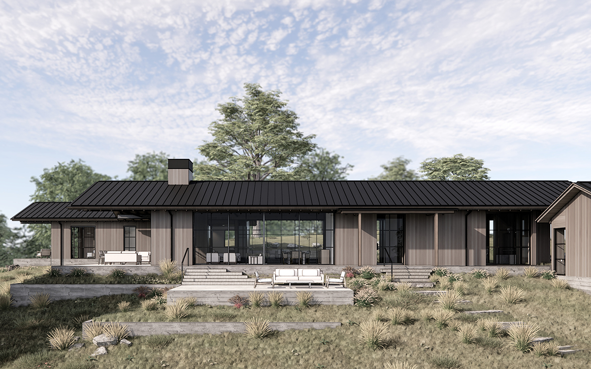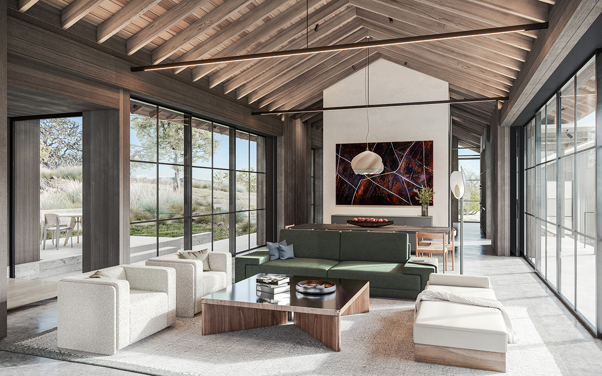 “This property is off the charts. It’s at the top of a knoll, and on a site visit, we stood there and turned north, south, east, west, and we loved every exposure,” he explains. “We knew the house had to engage with every orientation. So it’s designed around four different views—one in each cardinal direction.”