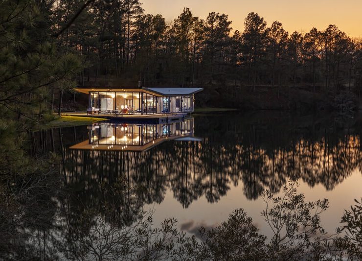 When you first see the 2,600sq ft lake house in Riverside, Texas, it looks like a glass box floating on…